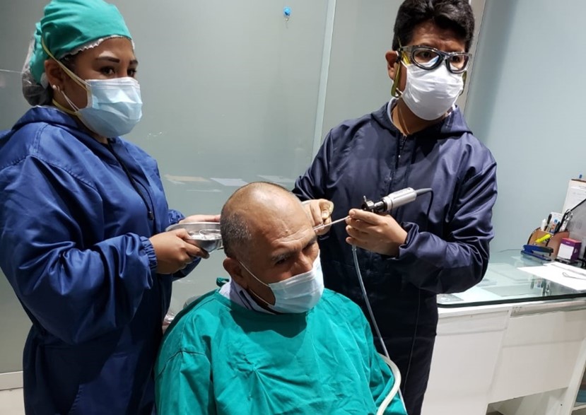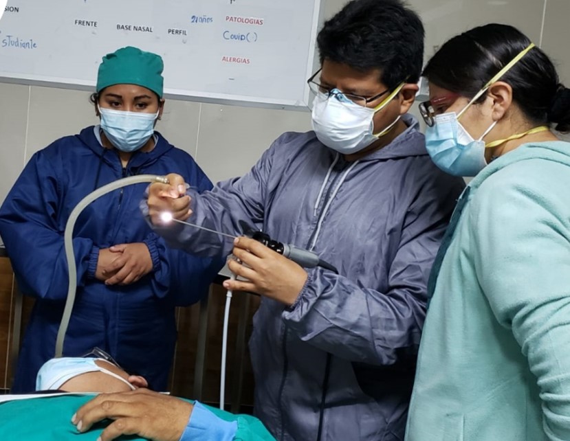 El otoscopio incorpora una fuente de luz directa y lentes de aumento (x1.5 a x2). Se pueden acoplar espéculos que se limpiarán y desinfectarán después de cada uso, o preferentemente se usarán de tipo desechables para mayor grado de higiene